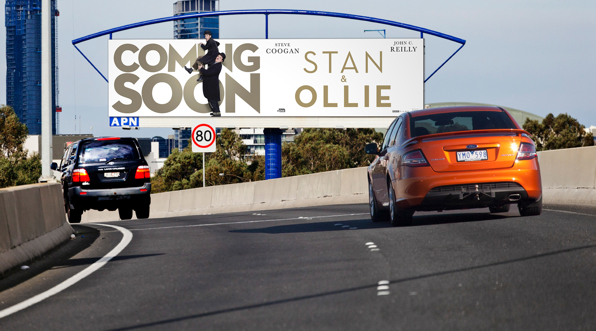 With eOne release of Stan & Ollie movie we pitched a three dimensional mock-up with extensions for for APN Outdoor. A prime position for a static inbound billboard site in the heart of Melbourne.
