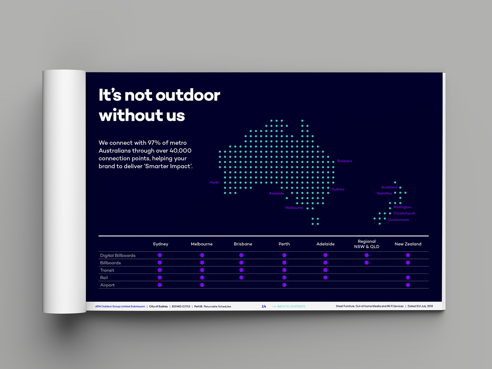 Preliminary design pages for the City of Sydney Tender – Street Furniture, Out-of-Home Media and Wi-Fi Services submission.